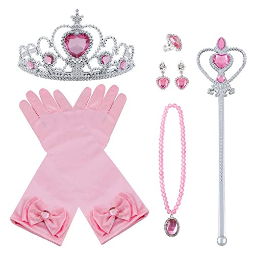 Vicloon prinsessklänning tillbehör, 7-delat set prinsessdräkter set av krona diadem, Elsa handskar, trollstav, halsband för jul prydnadskläder karneval Halloween födelsedagsfest