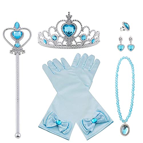 Vicloon Princess Elsa Kostym Tillbehör, 7st Princess Accessoarer, Tjejer Tiara trollstav Halsband Örhängen Handskar för Cosplay Christmas Carnival Birthday Party
