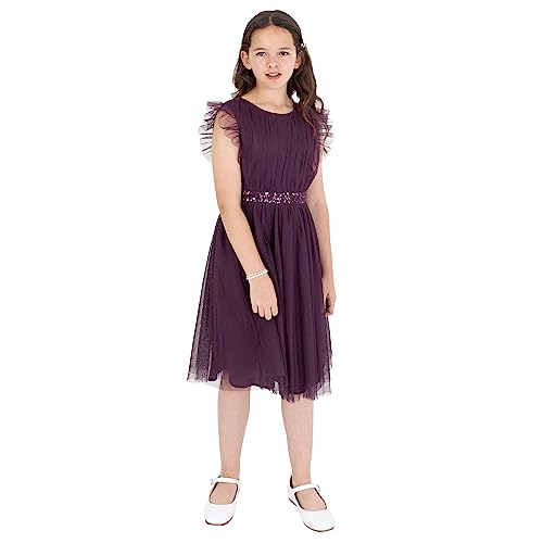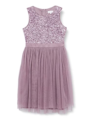 Maya Deluxe Midi-klänning för flickor, paljetter, utsmyckad, fest, tutu, brudtärnor, bröllop med bältesrosett, Moody Lilac, 3-4 År