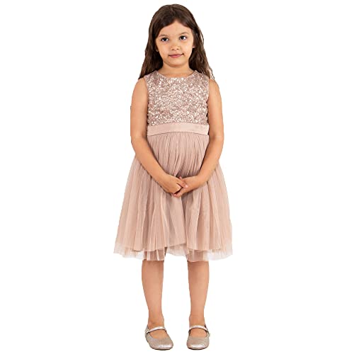 Maya Deluxe Midi-klänning för flickor, paljetter, utsmyckad, fest, tutu, brudtärnor, bröllop med bältesrosett, Taupe Blush, 3-4 År