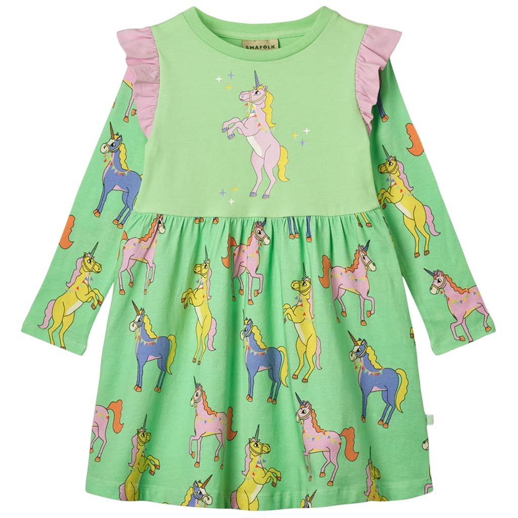 Småfolk Unicorns Långärmad Klänning Minty Green Tea 3-4 Y Grön 3-4 år kvinna
