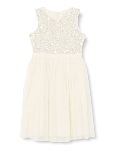 Maya Deluxe Midi-klänning för flickor, paljetter, utsmyckad, fest, tutu, brudtärnor, bröllop med bältesrosett, Elfenben, 3-4 År