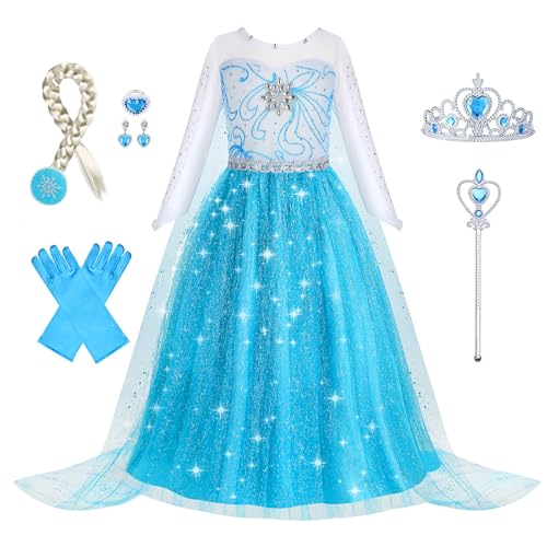 Vicloon Elsa Prinsessdräkt, med Princess Accessoarer, Elsa Klänning Snöprinsessdräkt Prinsessklänning Flickor Princess Kostym Klä upp för Fest Julkarnevalsfest Halloween Bröllopsfödelsedagsfest