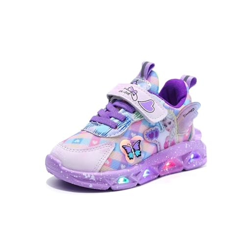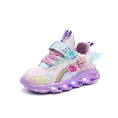 ELSA skor for tjejer, LED-skor for barn, självlysande skor, sneakers med kardborrefäste, blinkande skor, inomhusskor, sportskor som andas, julfödelsedag(Lila,28 EU)