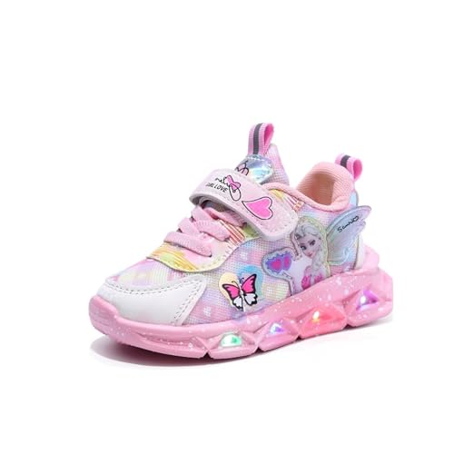 ELSA skor for tjejer, LED-skor for barn, självlysande skor, sneakers med kardborrefäste, blinkande skor, inomhusskor, sportskor som andas, julfödelsedag(Rosa,26 EU)