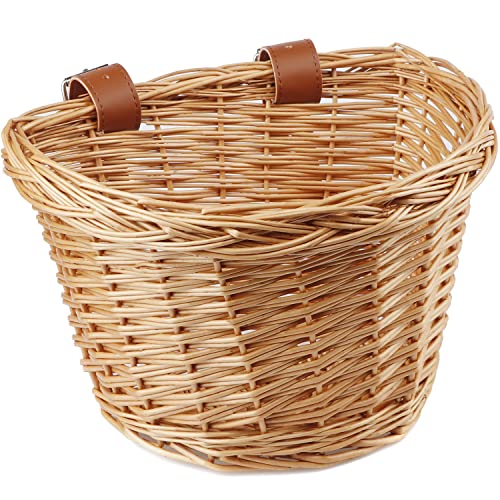 Avasta Cykelkorg i vide för barncyklar, passar 12-, 14-, 16-tums cykel, elscooter eller trehjuling, det följer med läderremmar för montering, storlek XS, honungsgul