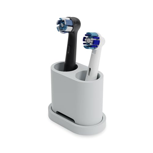 Qikfresh - Hållare för 2 borsthuvuden och eltandborstar - Kompatibel med Oral-B, iO, Philips Sonicare, Waterpik, Fairywill - Livsmedelsklassad silikon (Grå)