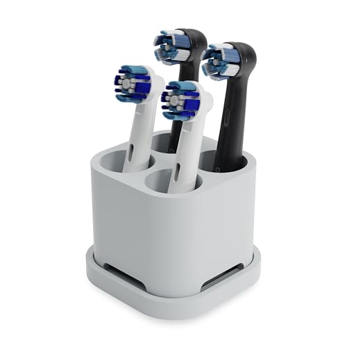 Qikfresh - Hållare för 4 borsthuvuden och eltandborstar - Kompatibel med Oral-B, iO, Philips Sonicare, Waterpik, Fairywill - Livsmedelsklassad silikon (Grå)