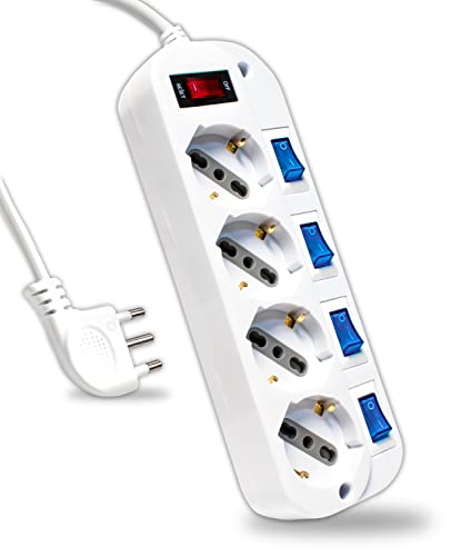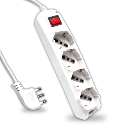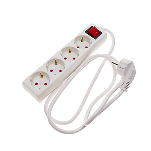 BeMatik - Eluttag 4 schuko 16A 230V vit med strömbrytare och 1,5 m kabel