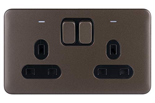 Schneider Electric GGBL3021DBMB slät eluttag med 2-vägs strömbrytare 13 A DP-med LED-ljus mocka brons