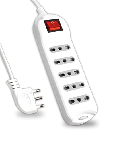V-TAC Ciabatta Elektrisk eluttag med strömbrytare och kabel 1,5 meter - 5 uttag 10/16A Bipass 2P+T - Med 16A Plug - Eluttag för hem, Kontor, Butik - Vit