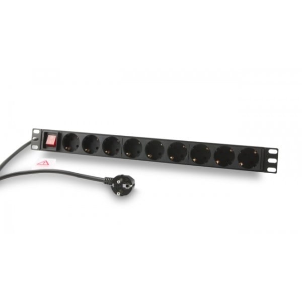 Synergy 21 PDU 9 st CEE7 eluttag 2 meter CEE7 Svart med strömbrytare