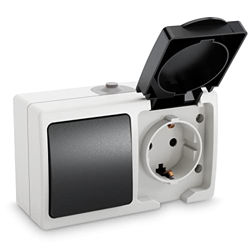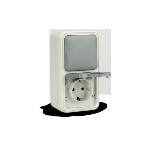 ABSINA Kombination av ett eluttag och en utskjutande strömbrytare IP44 - eluttag och utskjutande strömbrytare för våtrum - säkerhetsuttag 250 V 16A