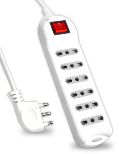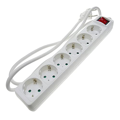 BeMatik - Eluttag 6 schuko 16A 230V vit med strömbrytare och 3 m kabel