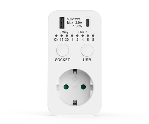Perfekt Uttag Med Nedräkning, Strömbrytare 230 V, Eluttag Med USB Och USB C-Kontakt, Programmerbar Timer, Vit