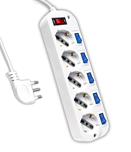 V-TAC Ciabatta Elektriskt eluttag med oberoende strömbrytare - 5 uttag 10/16A Bipass + Shuko - Plug 16A - Eluttag för hem, kontor, butik - Vit