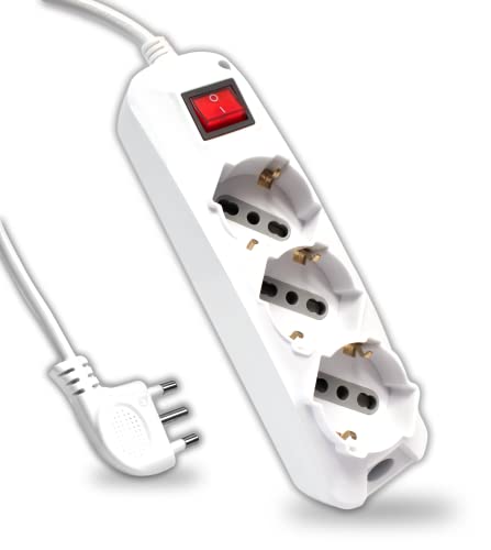 BeMatik - Eluttag 3 schuko 16A 230V vit med strömbrytare och 3m kabel