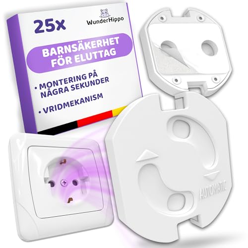 WunderHippo 25x Eluttagsskydd med vridmekanism – Barnsäkerhet för eluttag – Skydd för bebisar & barn – Vit
