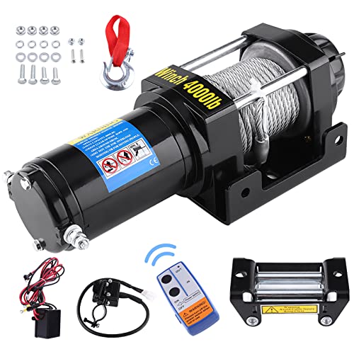 Elektrisk vinsch 12 V, 4 000 lb / 1 800 kg elvinsch motorvinsch med radiofjärrkontroll, 15 m vinsch för bil, yacht, lastbil, släpvagn