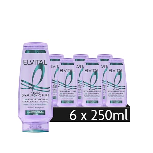 L'Oréal Paris Elvital fuktgivande balsam för fet hårbotten och fuktkrävande längder, med salicylsyra och hyaluronsyra, Hydra Hyaluronic Pure, 6 x 250 ml