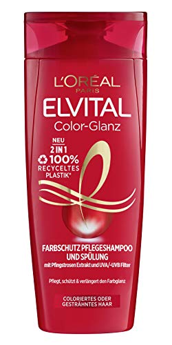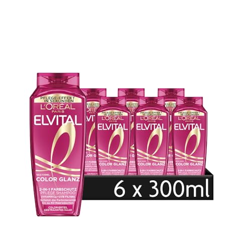 L'Oréal Paris Elvital färgskydd schampo och balsam, för färgat eller slingat hår, färgglans 2-i-1, 6 x 300 ml