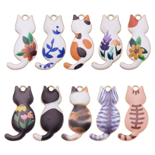 SINGULARU - Salem katt emalj berlock - mässingshängare med 18 k guld eller rodiumpläterad finish - vändbar berlock med färgad emalj detaljer och med handtagslås - smycken för kvinnor, Eén maat,