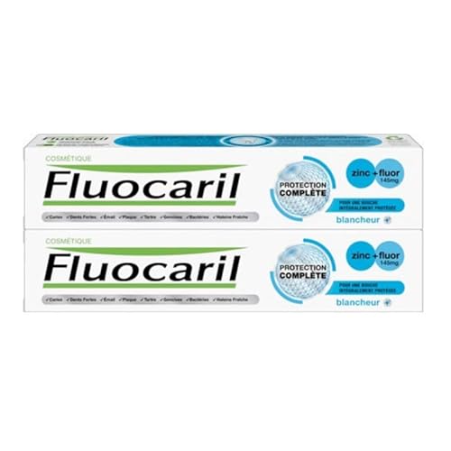 FLUOCARIL Tandkräm mot karies med fullt skydd av vithet 145 mg - arom/mintsmak - förstärkt emalj och starka tänder - hjälper till att förhindra håligheter, frisk andedräkt, vithet (2 x 75 ml)