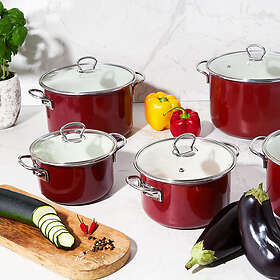 Overmont emaljerad gjutjärn rund gryta med lock 26 cm 5l