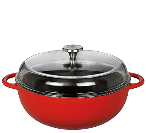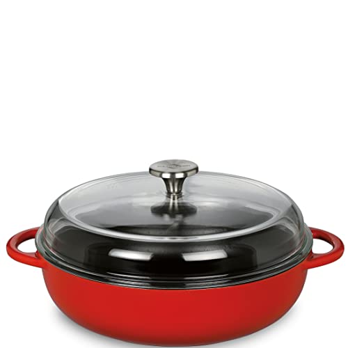 Küchenprofi hög gjutjärnspanna 28 cm, emaljerad, stekpanna med sidohandtag och glaslock, röd (0402600428)