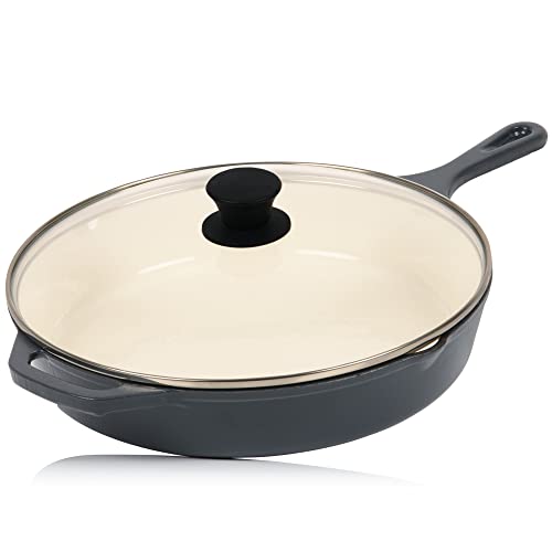 Emaljerad Gjutjärnspanna, Nonstick Emaljerad Stekpanna med Långt Handtag, Omeltte Pan Stekpanna Stekpanna Köksredskap för Gas/induktion/elektrisk Spis, Emaljerad Gjutjärn Runda