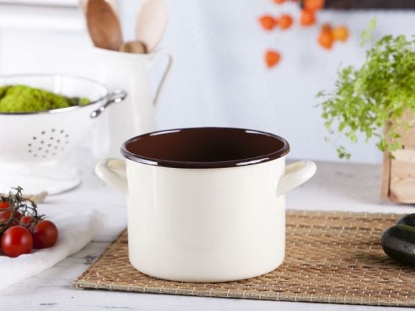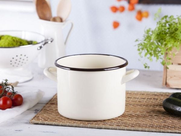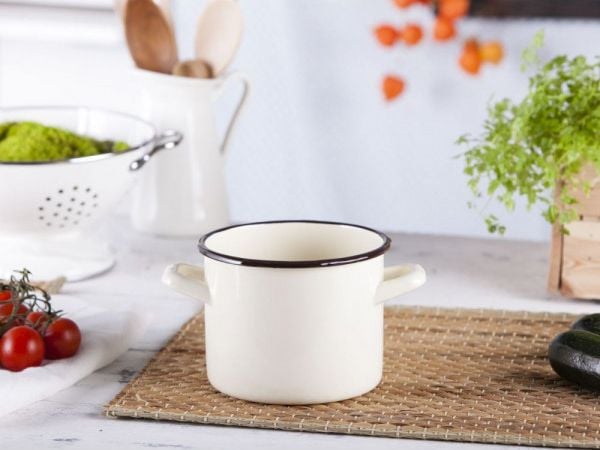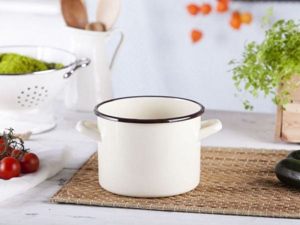 Emaljgryta Med Lock Pyza Creme 14 Cm 1,25 L Emalia Olkusz