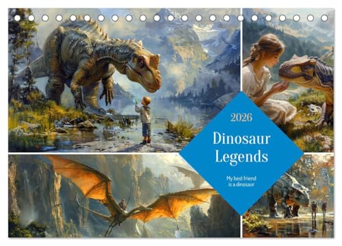 Dinosaur Legends (Desk Calendar 2026 DIN A5 landscape), CALVENDO 12 Month DeskCalendar: Embark on a timeless journey with humans and dinosaurs