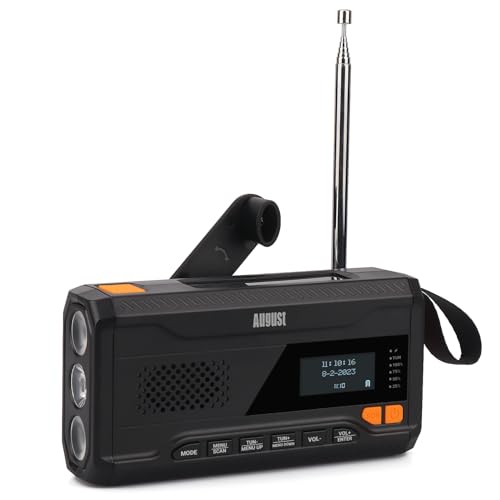 August MB290B–Solar Power Bank Upprullning Radio med Bluetooth 5.0–Uppladdningsbar camping eller fiske,4500 mAh allt-i-ett-bärbar DAB/FM-emergency radio,3,5 mm–handvev 3 ljusstyrkor–svart