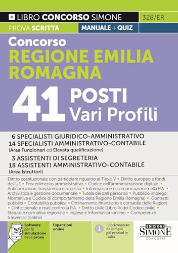 Concorso Regione Emilia Romagna. 41 posti vari profili. 14 specialisti amministrativo-contabile (Area funzionari ed elevata qualificazione) - 3 ... online. Con software di simulazione