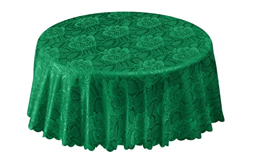 Emma Barclay damast ros bordsduk, skogsgrön, 70 cm rund diameter
