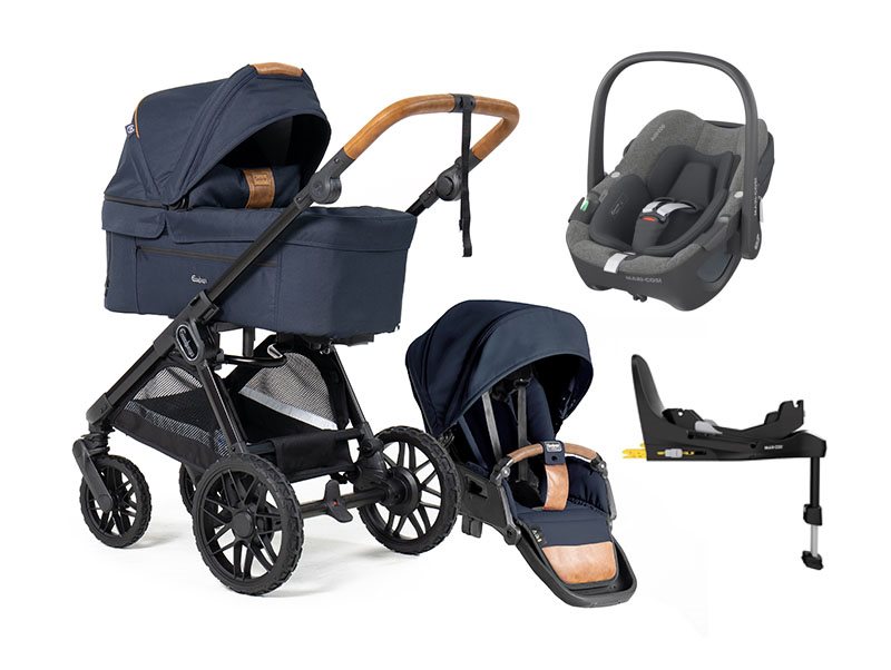 Emmaljunga Sento Pro duovagn Flat+ 2026 + Maxi-Cosi Pebble 360 babyskydd + bas