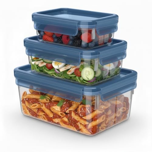 Emsa Clip&Close 3-uppsättning av rektangulärt glas av polypropen, hygieniskt, behåller inte lukt och smaker, 100% BPA-fri, frys- och mikrovågsugnssäker, diskmaskinssäker