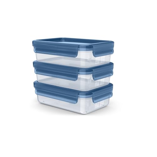 Emsa 508558 Clip & Close Matlådor, 1 liter, Set med 3 Stycken, Transparent/Blå