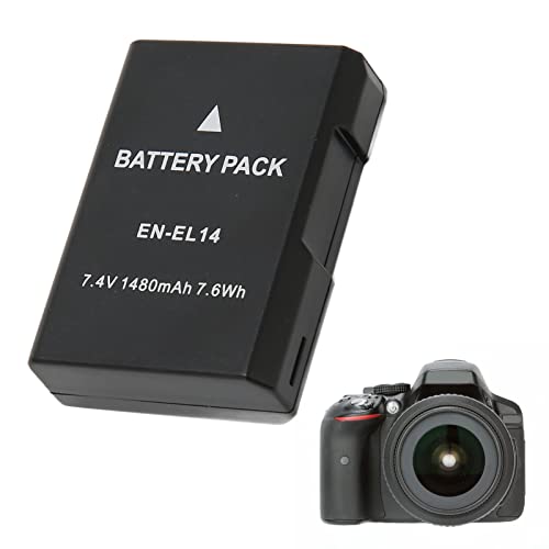 EN-EL14 Ersättningsbatteri, 7,4V 7,6Wh 1480mAh Batteri för D5300 D3200 D5200 D3400 D5600 D3500 D3300 D3100 D5100 P7100, Batteribyte för EN-EL14