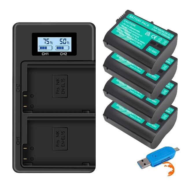 Nikon EN-EL15 batteri, dubbel USB-laddare, LCD-skärm, 4 batteri och laddare