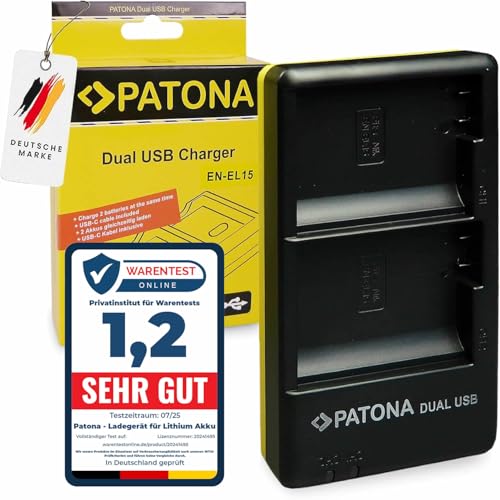 PATONA 1965 Laddare - kompatibel med Nikon EN-EL15 EN-EL15a EN-EL15b EN-EL15c-batteri - USB (USB-c och micro-USB)