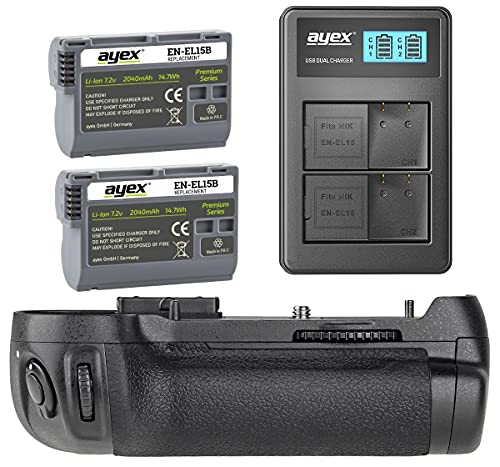 ayex batterigrepp för D750 med 2x EN-EL15 batterier och USB dubbelladdare