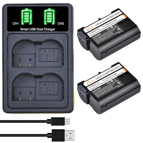K&F CONCEPT 2600mAh EN-EL15C batteri, USB C 2,5 timmars snabbladdning EN-EL15 batteri kompatibelt med Nik Z8, Z7, Z6, Z7ii, Z6ii, Z5, D850, D810, D810A, D780, D750, D610, D500, D7500, D7200 Kamera