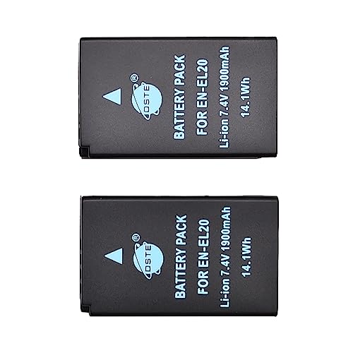 DSTE® 2 st EN-EL20 uppladdningsbart Li-ion-batteri för Nikon Coolpix A, Nikon 1 J1, Nikon 1 J2, Nikon 1 J3, Nikon 1 AW1, Nikon 1 S1 digitalkameror