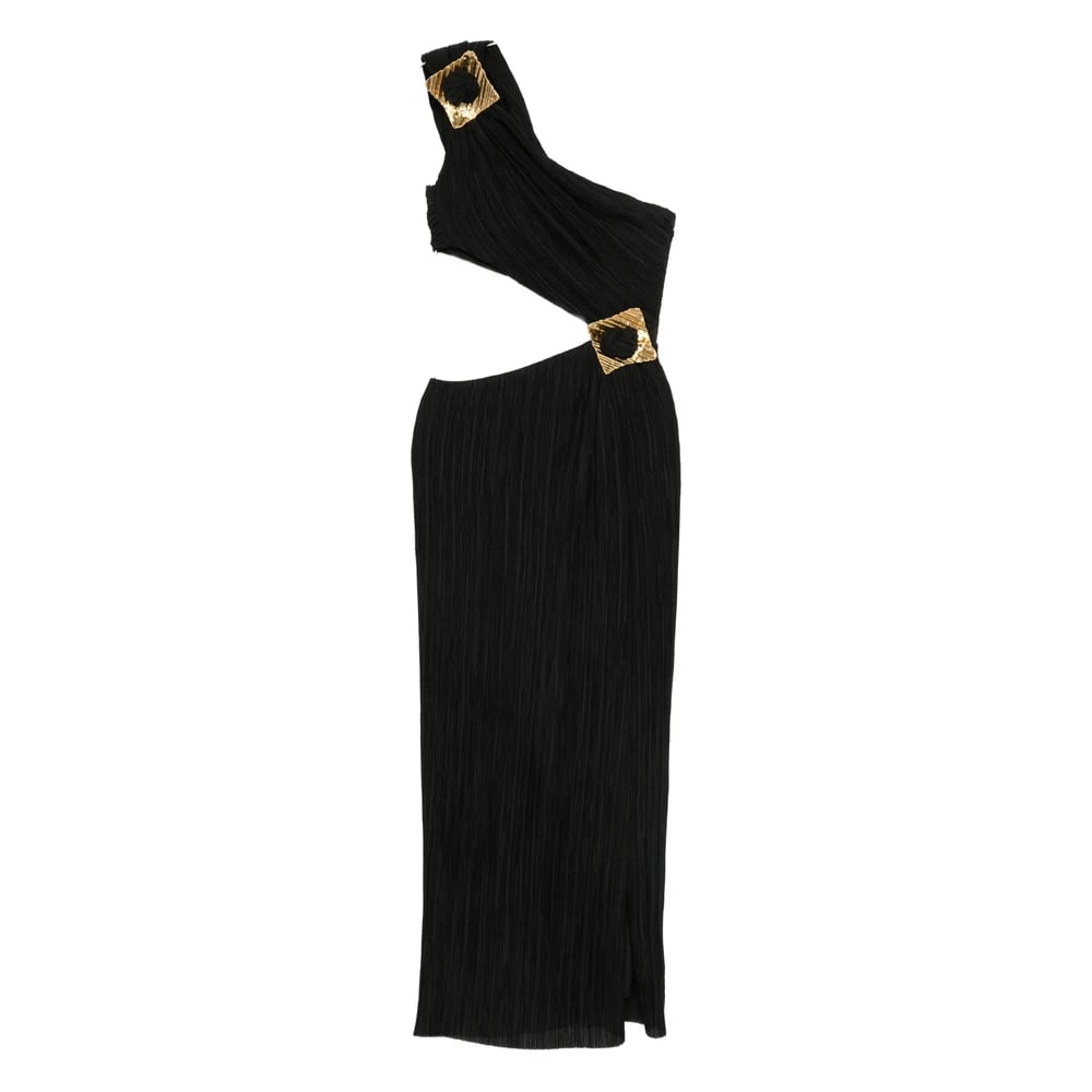 Cult Gaia, Klänningar , Dam, 3Xs, Polyester, Svart enaxlad klänning med guldutsmyckning