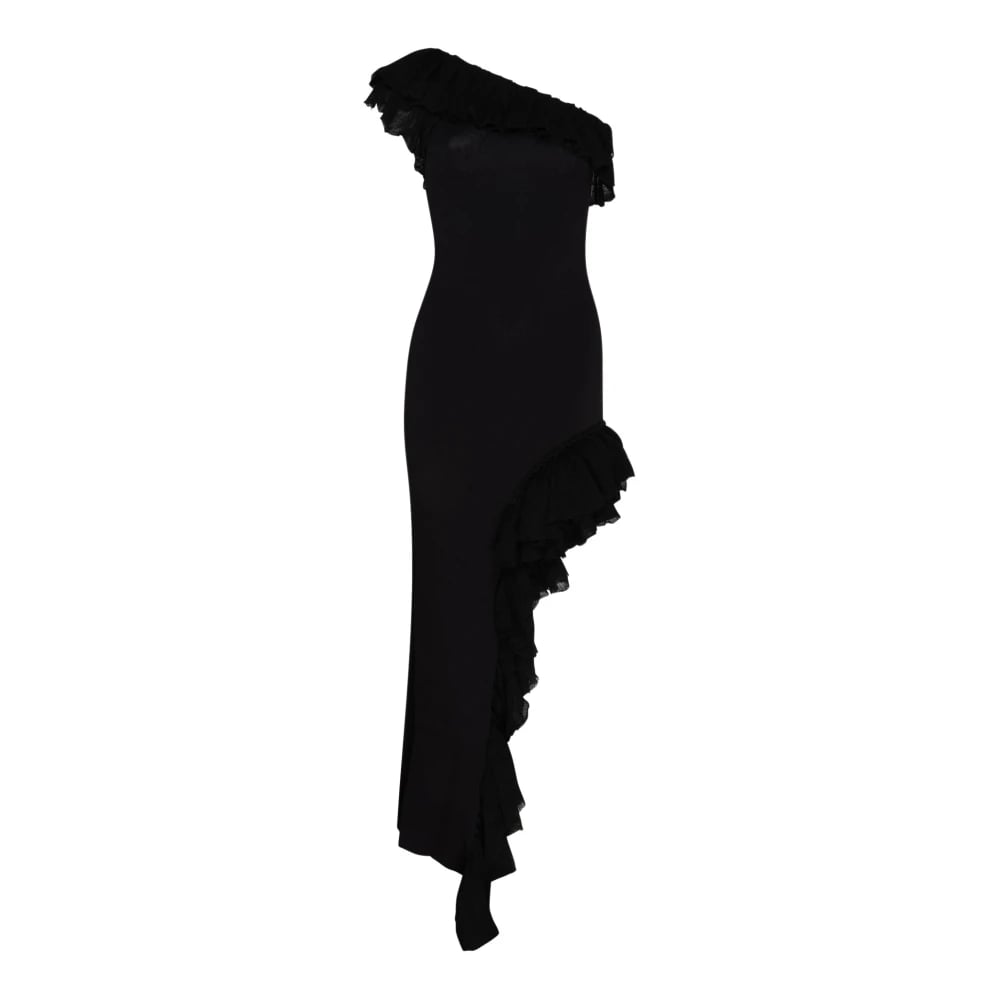 Circus Hotel, Klänningar , Dam, 2Xs, Polyester, Enaxlad Svart Asymmetrisk Klänning med Volanger
