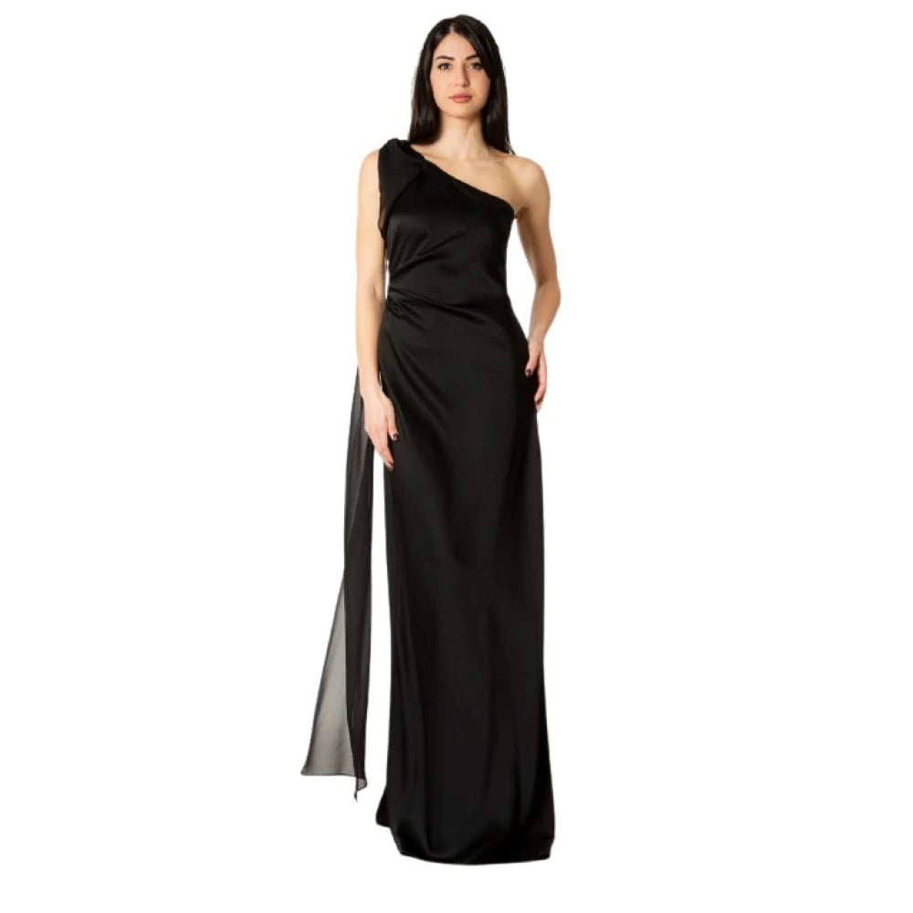 Simona Corsellini, Klänningar , Dam, M, Polyester, Elegant Enaxlad Klänning i Satin