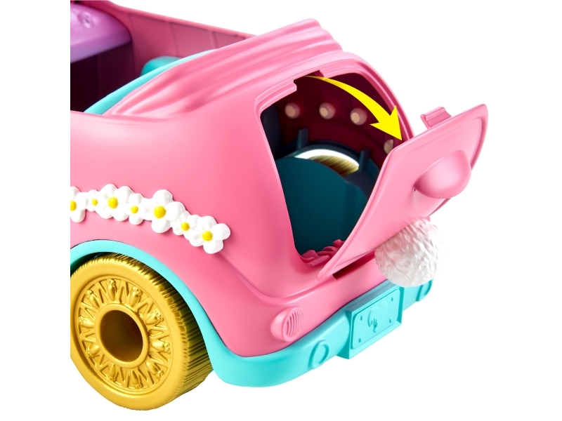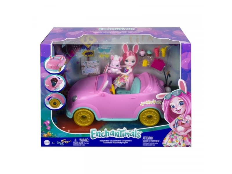 Enchantimals HCF85 - Kaninmobil (ca 26 cm) 10-delat set med docka, kaninfigur och tillbehör, fantastisk leksakspresent för barn från 3 år och uppåt