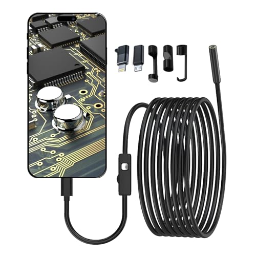 Ruycllo Endoskop för Smartphone med ljus - Endoskopisk kamera 8 mm 1920 HD, 6 lysdioder, 5 m IP67-kabel - Slanginspektionskamera-sond, kompatibel för Android och iOS, för bil, hem, slangar
