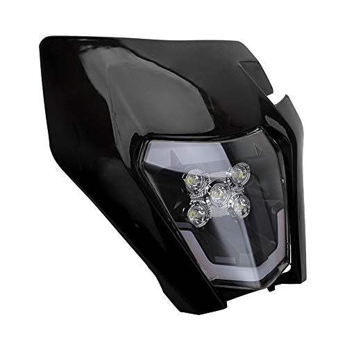 Motorcycle Headlight LED Universal Headlight Housing Light Headlight for EXC250 SX250 SXF250 EXC450 SX350 SXF450 EXC525 640LC4 Dirt Bike Motocross Enduro Supermoto-Black